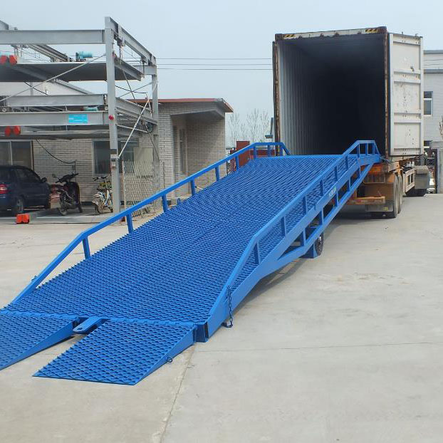 移動(dòng)式液壓登車橋:是實(shí)現(xiàn)貨物快速裝卸的專用輔助設(shè)備,它的高度調(diào)節(jié)功能使貨車與地面之間架起一座橋梁,叉車等搬運(yùn)車輛通過它能直接駛?cè)胴涇噧?nèi)部進(jìn)行貨物的批量裝卸,僅需單人作業(yè),即可實(shí)現(xiàn)貨物的快速裝卸。